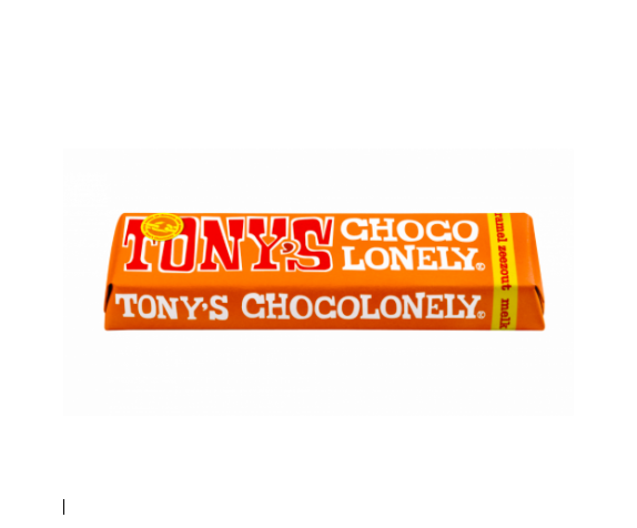 Belgische Fairtrade melkchocolade met tenminste 32% cacao, stukjes karamel en zeezout, geproduceerd in België.